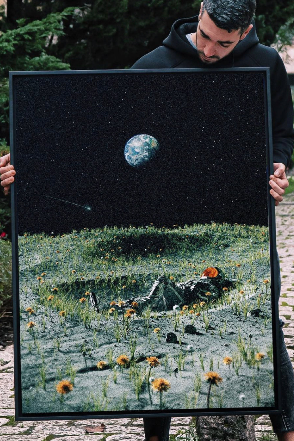 Cameroon-born and based artist, Maxime has been experimenting with digital collage since 2016. His work manipulates classic photography and geometric shapes with vibrant colors that are reflective of his African culture. It’s this self-described ‘Afrofuturistic’ style that has enabled Maxime to carve out a niche in a contemporary art form.